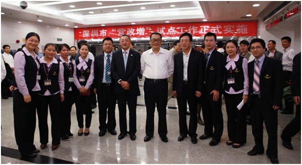 深圳市委常委、副市长、市营改增试点领导小组组长陈应春、深圳国税局局长刘军与出席“营改增”启动仪式相关领导合影